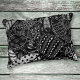 A rustic boho black and white whimsical fish patterned accent pillow. By Julie Nicholls©.