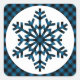 Trendy modern blue and black Buffalo lumberjack pattern snowflake on a white coloured Christmas Holiday season label.