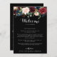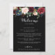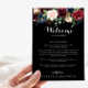 This rustic black botanical wedding welcome letter is perfect for a classic wedding. The design features burgundy, red, navy, blue and blush radiant and graceful hand-painted flowers in a black background, inspiring natural beauty.