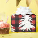 Rustic wrapping paper featuring white woodland forest trees pattern. The background is black buffalo check plaid but the red colour can be changed. Wrap it up this holiday season in bold rustic wilderness style! Stand out among that pile of presents!