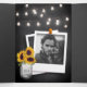 Amaze your guests with this rustic all in one wedding invite featuring beautiful white lace and sunflowers in mason jar on a chalkboard background with detachable RSVP card. Simply add your event details on this easy-to-use template and adorn this card with your favourite photo to make it a one-of-a-kind invitation.