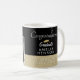 Elegant Rustic Black Congratulations Graduate 2 Photo Graduation Coffee Mug. Elegant gold ornament, rustic beige and black background. Personalise with the graduate`s name, year of the class, school name and add 2 graduate photos - you can use old and new photos. Make a unique mug for a graduate of high school, college or university.