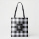 Rustic Black White Buffalo Check Plaid Monogram Tote Bag