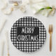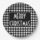 Rustic Black & White Buffalo Plaid Merry Christmas Paper Plate