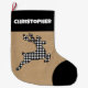 Rustic Black & White Plaid Reindeer Custom Name Large Christmas Stocking