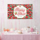 Looking for a berry first birthday banner? Look at our Rustic Black White Stripes Berry First Birthday Banner! It features digital hand-drawn watercolor of pink, red strawberries pattern, black and white stripes, white flowers, digital faux gold effect, and leaves. Perfect for a strawberry 1st birthday party , setting the tone for a joyful and colourful day. Beautiful berry first birthday decorations!