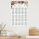 Wedding guest seating chart features your names in elegant calligraphy script script lettering, with your wedding date and guest table assignments beneath. Large size provides space for up to 25 tables. Designed to mach our Rustic Bloom wedding and event collection, with watercolor florals and foliage in muted autumn earth tones.
