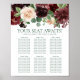 Sophisticated watercolor floral garland shower, birthday, or reception vertical seating assignment chart for 8-10-12 top tables featuring burgundy marsala red and blush pink hand-painted header drop border with navy blue accent flowers embellished by botanical laurel and dark red. From the "Boho Bloom" collection, this layout incorporates rich Bohemian wildflowers with radiant blooms and eucalyptus greenery foliage. For other colours or matching products, please visit the JustFharryn Zazzle store, or contact the designer, c/o Fharryn@yahoo.com All rights reserved. #bohochic #zazzlemade