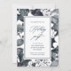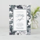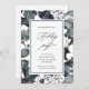 This festive holiday party design features a dark dusty blue winter botanical print on white, and lovely calligraphy script.