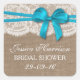 Rustic Blue Bow, Burlap & Lace Bridal Shower Square Sticker