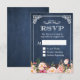 Rustic Blue Chalkboard Pink Floral RSVP Reply