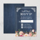 Rustic Blue Chalkboard Pink Floral RSVP Reply Invitations .