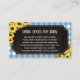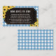 Rustic books for baby enclosure card for a baby-q shower with yellow sunflowers, printed wood grain, and a blue gingham pattern.