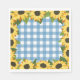 Rustic napkins for backyard baby showers, bbq engagement parties, rustic weddings and more with blue gingham and sunflowers.