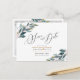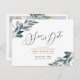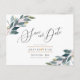 Rustic Dusty Blue gum Eucalyptus foliage, accented with elegant modern calligraphy script Save the Date in faux gold postcards. Copyright © 2016-2020 Bombino Designs.