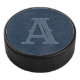 This personalised hockey puck for men features a faux blue leather texture background with a monogrammed initial for you to personalise. Designed by world renowned artist ©Tim Coffey.