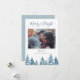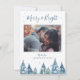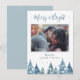 Rustic Blue Pine Forest Watercolor Holiday Photo Card