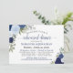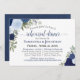 This beautiful rehearsal dinner invitation features a watercolor floral design with roses in shades of dusty blue, navy, and indigo on a classic white background. the back is a deep marbled blue colour. It has information on both the wedding rehearsal as well as the celebratory dinner that follows. Perfect for keeping the bridal party informed about all of the pre-wedding festivities.