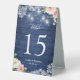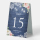Rustic Blue String Lights Lace Floral Table Number Tent Sign.