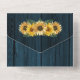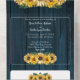 Invite guests to your upcoming wedding with a Rustic Blue Sunflower All in One Wedding Invite. Invite design features a rustic wooden background with an elegant bouquet of sunflowers. Personalize with the groom and bride's names along with the wedding date and location. Additional wedding stationery available with this design as well.