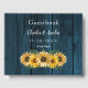 Record the guests on your big day with a Rustic Blue Sunflower Wedding Day Guestbook. Guestbook design features a rustic wooden background with an elegant bouquet of sunflowers. Additional wedding stationery available with this design as well.