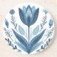 Rustic Blue Tulip Flower Folk Art Botanical Design Coaster