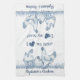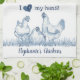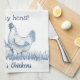 Rustic Blue & White Chicken, Hen Personalised Tea Towel