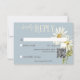 Introducing our charming wedding response card with a QR code, designed to add a touch of rustic elegance to your special day. This exquisite design features a soft dusty blue background, complemented by a delicate white text box outlined with a thin floating frame. Crowned by a stunning spray of watercolor white and yellow daisies and delicate blue wildflowers, this design sets the perfect tone for your celebration. The soft hues and rustic design capture the essence of a countryside romance, making it an ideal choice. Created by Simply Farmhouse Press.
