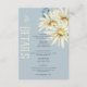 Introducing our charming wedding details card, designed to add a touch of rustic elegance to your special day. This exquisite design features a soft dusty blue background, complemented by a delicate white text box outlined with a thin floating frame. Crowned by a stunning spray of watercolor white and yellow daisies and delicate blue wildflowers, this design sets the perfect tone for your celebration. The soft hues and rustic design capture the essence of a countryside romance, making it an ideal choice. Created by Simply Farmhouse Press.