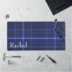 Protect your desktop in personalised style with this custom plaid desk mat. Featuring a classic blue and grey Scottish tartan pattern, this large mousepad desk mat is the perfect accessory for your home office or gaming setup. The durable, non-slip rubber base and smooth fabric surface provide a comfortable and precise workspace for your mouse and keyboard, while the vibrant, fade-resistant design adds a stylish touch. Personalise it with a custom name for a unique gift or to brand your workspace. This customisable desk mat is an ideal accessory for students, professionals, and gamers, offering both desktop protection and a stylish aesthetic. Add a touch of elegance and organisation to your desk today! Created by Simply Farmhouse Press.