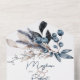 AVAILABLE WITH OR WITHOUT A QR CODE TO SCAN. This design features dusty blue and soft tan winter foliage sprigs on a white background. Personalised All-In-One invitations are a unique combination of both a beautifully printed custom invitation with an easy to tear off perforated RSVP postcard. And they are so easy to use! You simply fold, then seal the back flap with the three included clear stickers, and mail. And when your guests receive your custom invite, they just tear the perforated RSVP Card off and drop it back in the mail to you!