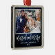 Modern Brush Script, Rustic Blue Wood Married and Merry Wedding Photo Ornament