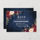 Rustic Blue Wood Burgundy Floral Wedding RSVP Card
