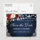 Rustic Blue Wood Lights Lace Floral Save the Date Announcement Postcard
