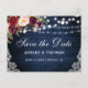 Rustic Blue Wood String Lights Lace Watercolor Burgundy Floral Save the Date Postcard - Printed Back