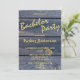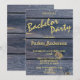 Invite your friends and family to a stylish bachelor party with this rustic blue invitation in blue and gold. Cheers to a fun bachelor night. Coordinating items available upon request.