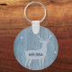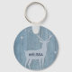 Rustic Blue Wood Reindeer Country Christmas Key Ring