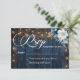 Rustic Blue Wood String Lights Floral Wedding RSVP Card
