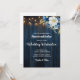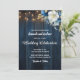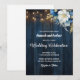 An elegant Wedding Invitation with elegant calligraphy completed by wonderful blue wood, garden string lights and white blue floral with gold glitter. You can personalise this card with your Wedding details.