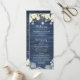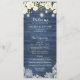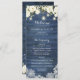 Rustic Blue Wood White Flowers Lace Wedding Program. Rustic Wood String Lights Mason Jars White Floral Greenery Wedding Order of Service