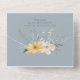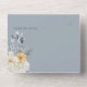 ALSO AVAILABLE WITH A QR CODE TO SCAN IN THE RSVP AREA. This beautiful design features dusty blue, pale yellow and white flowers on a soft dusty blue background. Personalised All-In-One invitations are a unique combination of both a beautifully printed custom invitation with an easy to tear off perforated RSVP postcard. And they are so easy to use! You simply fold, then seal the back flap with the three included clear stickers, and mail. And when your guests receive your custom invite, they just tear the perforated RSVP Card off and drop it back in the mail to you!