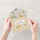 AVAILABLE WITH OR WITHOUT QR CODE TO SCAN IN RSVP AREA. This beautiful design features dusty blue, pale yellow and white flowers on a pale yellow background. Add a QR code to your invitation so that gusts can quickly access your wedding Website for details, directions, menu options, and more, or add your gift registry Web URL. Personalised All-In-One invitations are a unique combination of both a beautifully printed custom invitation with an easy to tear off perforated RSVP postcard. And they are so easy to use! You simply fold, then seal the back flap with the three included clear stickers, and mail. And when your guests receive your custom invite, they just tear the perforated RSVP Card off and drop it back in the mail to you!