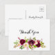 Rustic Blush Burgundy Floral Calligraphy Thank You Postcard