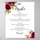 This rustic blush burgundy wedding drinks menu sign is perfect for a modern wedding. The design features pink, blush, red, burgundy and bordo watercolor flowers with green foliage.