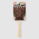 Keep your guests cool and stylish with this rustic wedding program hand fan, featuring romantic blush pink florals and string lights against a wood background. Perfect for outdoor and barn weddings, this fan combines elegance with a touch of country charm. Customise with your ceremony details for a memorable keepsake that complements your rustic or garden wedding theme. Ideal for summer weddings, this hand fan adds both function and beauty to your special day.