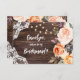 Give your friends this wood, rustic, blush pink & peach floral with string lights will you be my bridesmaid? card. Great for rustic, country, and backyard weddings.