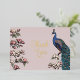 This Rustic Blush Pink and Gold Peacock Thank You Card features a chic Chinoiserie-style hand-drawn blue/teal peacock perched on a magnolia tree in full bloom. The back features personal Thank You message and Bride and Groom names.