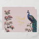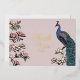 Rustic Blush Pink and Gold Peacock Thank You Card