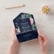 Rustic Blush Pink Floral Navy Blue Wedding All In One Invitation