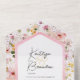 AVAILABLE WITH OR WITHOUT A QR CODE TO SCAN. This design features a watercolor floral background in different hues of blush pink, white, yellow, lavender, and green on a soft watercolor pink background. The text area has a faux pink rose gold frame around it. Add a QR code to your invitation so that gusts can quickly access your wedding Website for details, directions, menu options, and more, or add your gift registry Web URL. Personalised All-In-One invitations are a unique combination of both a beautifully printed custom invitation with an easy to tear off perforated RSVP postcard. And they are so easy to use! You simply fold, then seal the back flap with the three included clear stickers, and mail. And when your guests receive your custom invite, they just tear the perforated RSVP Card off and drop it back in the mail to you!